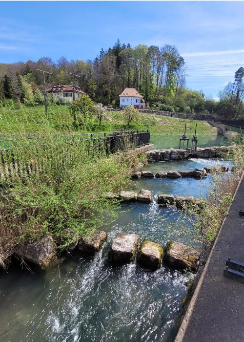 Today, the area offers a fascinating mix of cultivated land and protected natural habitats. The nearby Alte Aare, the former riverbed, has become a peaceful waterway known for its biodiversity. Another highlight is the remarkable fish ladder at the canal, allowing migrating fish to navigate the waterway.